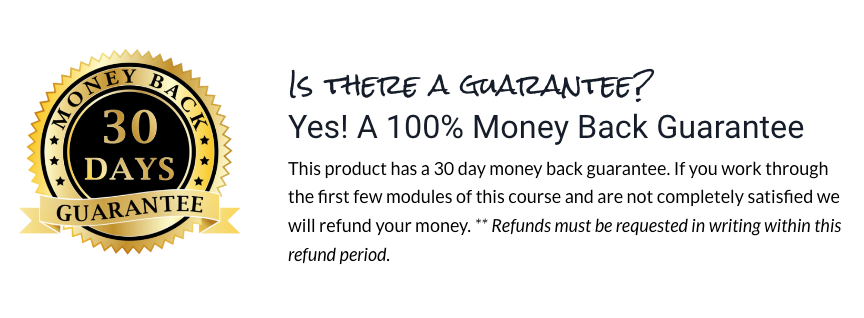 Yes. If you are unsatisfied with the course content for any reason within 30, just let us know right away and we will provide a full refund.